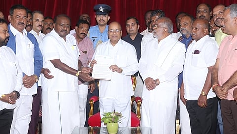 ಪಕ್ಷದ ಶಾಸಕರು, ಮಾಜಿ ಸಚಿವರು, ಮಾಜಿ ಶಾಸಕರು ಹಾಗೂ ಜಿಲ್ಲಾ ಘಟಕಗಳ ಅಧ್ಯಕ್ಷರ ಜತೆ ರಾಜಭವನಕ್ಕೆ ನಿಯೋಗದಲ್ಲಿ ತೆರಳಿದ ಅವರು, ರಾಜ್ಯಪಾಲರಿಗೆ ಮನವಿ ಸಲ್ಲಿಸಿದರು.