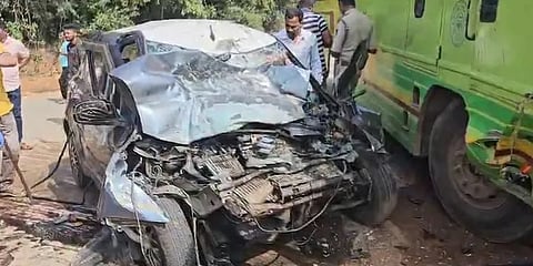 ಶಿರಸಿ: ಉತ್ತರ ಕನ್ನಡ ಜಿಲ್ಲೆಯ ಶಿರಸಿ ತಾಲೂಕಿನ ಬಂಡಲ ಗ್ರಾಮದಲ್ಲಿ ಶುಕ್ರವಾರ ಕಾರು ಮತ್ತು ರಾಜ್ಯ ರಸ್ತೆ ಸಾರಿಗೆ ಸಂಸ್ಥೆಯ ಬಸ್ ನಡುವೆ ಮುಖಾಮುಖಿ ಡಿಕ್ಕಿ ಸಂಭವಿಸಿದ್ದು, ಭೀಕರ ಅಪಘಾತದಲ್ಲಿ ಒಂದೇ ಕುಟುಂಬದ ನಾಲ್ವರು ಸೇರಿದಂತೆ ಐವರು ಮೃತಪಟ್ಟಿದ್ದಾರೆ.