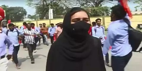 ಮಂಡ್ಯ: ಹಿಜಾಬ್ ಮೇಲಿನ ನಿಷೇಧವನ್ನು ಹಿಂತೆಗೆದುಕೊಳ್ಳುವ ಸಿಎಂ ಸಿದ್ದರಾಮಯ್ಯನವರ ಘೋಷಣೆಗೆ ಪ್ರತಿಕ್ರಿಯಿಸಿದ ಮಂಡ್ಯ ಜಿಲ್ಲೆಯ ವಿದ್ಯಾರ್ಥಿ ಹಾಗೂ 'ಜೈ ಶ್ರೀ ರಾಮ್' ಎಂದು ಘೋಷಣೆ ಕೂಗಿದ ಗುಂಪಿನ ವಿರುದ್ಧ 'ಅಲ್ಲಾ ಹು ಅಕ್ಬರ್' ಎಂದು ಘೋಷಣೆ ಕೂಗಿದ್ದ ಮುಸ್ಕಾನ್, 'ಹಿಜಾಬ್' ಧರಿಸುವುದು ನಮ್ಮ ಹಕ್ಕು ಮತ್ತು ಇನ್ನ್ಮುಂದೆ ನಾವು ಸಹೋದರ ಸಹೋದರಿಯರಂತೆ ಬದುಕೋಣ' ಎಂದಿದ್ದಾರೆ.