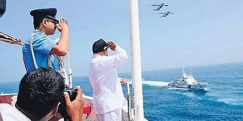 ಸಮುದ್ರ ತಂಡದಿಂದ ಸುಮಾರು 15 ನಾಟಿಕಲ್ ಮೈಲು ಆಳ ಸಮುದ್ರದಲ್ಲಿ ತಟ ರಕ್ಷಣಾ ಪಡೆಯ ಒಟ್ಟು 6 ಅತ್ಯಾಧುನಿಕ ನೌಕೆಗಳು, ಎರಡು ಹೆಲಿಕಾಪ್ಟರ್ ಗಳು, ಎರಡು ಡಾರ್ನಿಯರ್ ವಿಮಾನಗಳು ವಿವಿಧ ರೋಚಕ ಕಸರತ್ತುಗಳನ್ನು ಪ್ರದರ್ಶಿಸಿದವು.