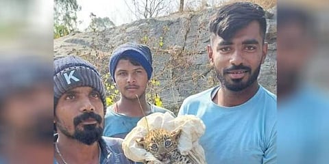 ಎಂಟು ಚಿರತೆ ಮರಿಗಳು ಕಲ್ಲುಬಂಡೆಯ ಕೆಳಗೆ ಸಿಲುಕಿರುವುದನ್ನು ಯುವಕರಾದ ಶಿವಮೂರ್ತಿ, ಕೀರ್ತಿಕುಮಾರ್ ಮತ್ತು ಅವರ ಸ್ನೇಹಿತರು ಗಮನಿಸಿದ್ದಾರೆ. ಅವರು ಮರಿಗಳಿಗೆ ದಾರಿ ಮಾಡಿಕೊಟ್ಟಿದ್ದಾರೆ.
