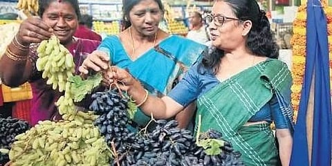 ಹಾಪ್ಕಾಮ್ಸ್ ಅಧ್ಯಕ್ಷ ಎನ್.ದೇವರಾಜ್ ಮಾತನಾಡಿ, ಚಿಕ್ಕಬಳ್ಳಾಪುರ ಮತ್ತು ಇತರ ಕೆಲವು ಜಿಲ್ಲೆಗಳಿಂದ 500 ಮೆಟ್ರಿಕ್ ಟನ್ ವಿವಿಧ ತಳಿಯ ದ್ರಾಕ್ಷಿಯನ್ನು ಖರೀದಿಸಿ ಮಾರಾಟ ಮಾಡುವ ಗುರಿ ಹೊಂದಲಾಗಿದ್ದು, ಬೆಂಗಳೂರಿನ ಹಾಪ್ಕಾಮ್ಸ್'ನ ಎಲ್ಲಾ ಮಳಿಗೆಗಳಿಂದ 800 ಮೆಟ್ರಿಕ್ ಟನ್ ಕಲ್ಲಂಗಡಿಗಳನ್ನು ಮಾರಾಟ ಮಾಡುವ ಗುರಿಯನ್ನು ಹೊಂದಲಾಗಿದೆ ಎಂದು ಹೇಳಿದರು.