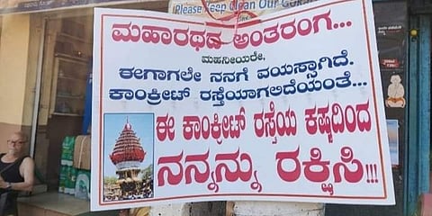 ರಥಬೀದಿಗೆ ಕಾಂಕ್ರೀಟ್ ಹಾಕದಂತೆ ಅಧಿಕಾರಿಗಳಿಗೆ ಈ ಐತಿಹಾಸಿಕ ರಥ ಮನವಿ ಮಾಡಿದ್ದು, ರಥದ ಸಹಿತ ಇರುವ ಈ ಮನವಿಯ ಫೋಟೋ ವೈರಲ್ ಆಗತೊಡಗಿದೆ.