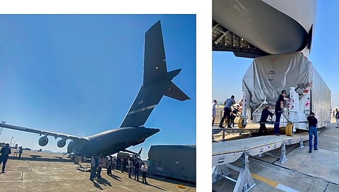 ಸಿಂಥೆಟಿಕ್ ಅಪರ್ಚರ್ ರಾಡಾರ್ (ನಿಸಾರ್) ಉಪಗ್ರಹವನ್ನು ಹೊತ್ತ ಅಮೆರಿಕನ್ ವಾಯುಪಡೆಯ ಸಿ-17 ಸಾರಿಗೆ ವಿಮಾನವು, ಅಮೆರಿಕದ ಕ್ಯಾಲಿಫೋರ್ನಿಯಾದಿಂದ ಹೊರಟು ಬೆಂಗಳೂರಿಗೆ ಬಂದಿಳಿದಿದೆ.