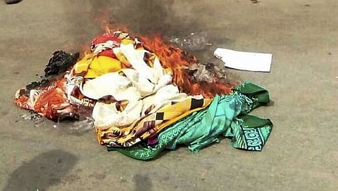 ಚಿಕ್ಕಮಗಳೂರು: ಚುನಾವಣೆಗೆ ಸ್ಪರ್ಧಿಸುವಆಕಾಂಕ್ಷಿಗಳು ಉಡುಗೊರೆಯಾಗಿ ನೀಡಿದ್ದ ಸೀರೆಗಳನ್ನು ಸುಟ್ಟು ಹಾಕಿರುವ ಘಟನೆ ಚಿಕ್ಕಮಗಳೂರಿನ ಭಕ್ತರಹಳ್ಳಿ ಮತ್ತು ಮಲ್ಲೇನಹಳ್ಳಿ ಗ್ರಾಮದಲ್ಲಿ ಮಂಗಳವಾರ ನಡೆದಿದೆ. ಸೀರೆ ಹಂಚುತ್ತಿದ್ದ ಬಿಜೆಪಿ ಕಾರ್ಯಕರ್ತರ ಸಮ್ಮುಖದಲ್ಲಿ ಈ ಘಟನೆ ನಡೆದಿದೆ.