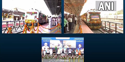 ಧಾರವಾಡ: ಪ್ರಧಾನಿ ನರೇಂದ್ರ ಮೋದಿ ಧಾರವಾಡದಲ್ಲಿಂದು ನೂತನ ಐಐಟಿ ಕ್ಯಾಂಪಸ್ ಮತ್ತು ವಿಶ್ವದಲ್ಲಿಯೇ ಅತಿ ದೊಡ್ಡದಾದ ರೈಲು ನಿಲ್ದಾಣವನ್ನು ಉದ್ಘಾಟಿಸಿದರು. ಕೇಂದ್ರ ಕಲ್ಲಿದ್ದಲು, ಗಣಿ ಮತ್ತು ಸಂಸದೀಯ ವ್ಯವಹಾರಗಳ ಸಚಿವ ಪ್ರಹ್ಲಾದ್ ಜೋಶಿ, ಮುಖ್ಯಮಂತ್ರಿ ಬಸವರಾಜ ಬೊಮ್ಮಾಯಿ ಮತ್ತಿತರರು ಉಪಸ್ಥಿತರಿದ್ದರು.