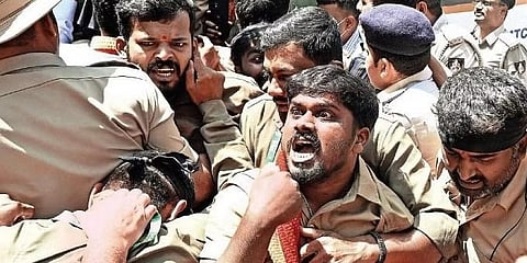 ಆಟೋ ಚಾಲಕರು ಜಾಥಾದ ಮೂಲಕ ರೇಸ್ ಕೋರ್ಟ್ ಸಮೀಪದಲ್ಲಿರುವ ಮುಖ್ಯಮಂತ್ರಿ ಬಸವರಾಜ ಬೊಮ್ಮಾಯಿಯವರ ನಿವಾಸಕ್ಕೆ ಮುತ್ತಿಗೆ ಹಾಕಲು ಮುಂದಾಗಿದ್ದರು. ಸಂಗೊಳ್ಳಿ ರಾಯಣ್ಣ ಪ್ರತಿಮೆ ಬಳಿಯೇ ಚಾಲಕರನ್ನು ಪೊಲೀಸರು ತಡೆದರು, ಈ ಸಂದರ್ಭದಲ್ಲಿ ಆಟೋ ಚಾಲಕರ ಮೇಲೆ ಲಘು ಪ್ರಹಾರ ನಡೆಸಿದರು. ಬಳಿಕ ಮುಂಜಾಗ್ರತಾ ಕ್ರಮವಾಗಿ ಕೆಲವರನ್ನು ವಶಕ್ಕೆ ಪಡೆದುಕೊಂಡರು.