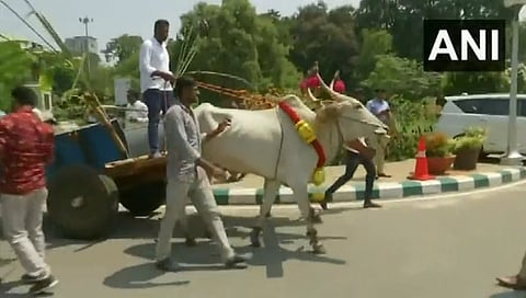 ಬೆಂಗಳೂರು: ಮೂರು ದಿನಗಳ ವಿಧಾನಸಭೆ ಅಧಿವೇಶನ ಸೋಮವಾರದಿಂದ ಆರಂಭವಾಗಿದ್ದು, ಕಾಂಗ್ರೆಸ್ ಪಕ್ಷದ ನೂತನ ಶಾಸಕರು ಎತ್ತಿನ ಗಾಡಿ ಮೂಲಕ ವಿಧಾನಸೌಧಕ್ಕೆ ಆಗಮಿಸಿ, ನೆರೆದಿದ್ದವರ ಗಮನ ಸೆಳೆದರು.