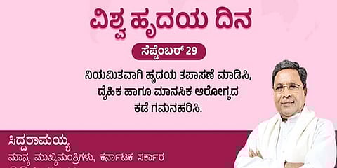ವಿಶ್ವ ಹೃದಯ ದಿನದ ಅಂಗವಾಗಿ ಸಾಮಾಜಿಕ ಜಾಲತಾಣ ಎಕ್ಸ್ ನಲ್ಲಿ ಮಾಹಿತಿ ಹಂಚಿಕೊಂಡಿರುವ ಮುಖ್ಯಮಂತ್ರಿ ಸಿದ್ದರಾಮಯ್ಯ, ಸ್ವಸ್ಥ ಹೃದಯ ಆರೋಗ್ಯಯುತ ಬದುಕಿನ ಕೀಲಿಕೈ. ಆರೋಗ್ಯಕ್ಕೆ ಪುಷ್ಟಿ ನೀಡುವಂತಹ ಉತ್ತಮ ಅಭ್ಯಾಸಗಳನ್ನು ರೂಢಿಸಿಕೊಳ್ಳಿ, ಮಾನಸಿಕ ಮತ್ತು ದೈಹಿಕ ಒತ್ತಡಗಳ ನಿಯಂತ್ರಣಕ್ಕಾಗಿ ಇರುವ ಸರಳ ಮಾರ್ಗಗಳನ್ನು ಅನುಸರಿಸಿ, ನಿಯಮಿತವಾಗಿ ಹೃದಯ ತಪಾಸಣೆ ಮಾಡಿಸಿ. ನೀವು ನಿಮ್ಮ ಹೃದಯದ ಕಾಳಜಿ ವಹಿಸಿದರೆ, ಹೃದಯ ನಿಮ್ಮ ದೇಹದ ಕಾಳಜಿ ವಹಿಸುತ್ತದೆ. ಮರೆಯದಿರಿ, ಹೃದಯ ಹಗುರಾಗಿದ್ದರೆ ಬದುಕು ಸುಂದರ ಎಂದಿದ್ದಾರೆ.