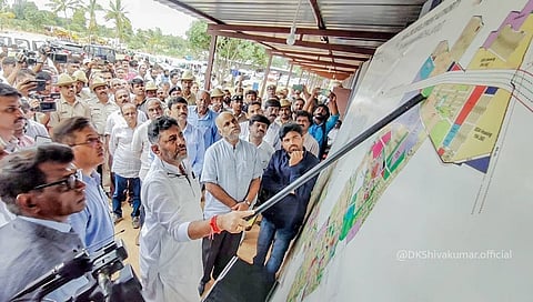 ಯಲಹಂಕದ ಡಾ.ಕೆ.ಶಿವರಾಮ ಕಾರಂತ ಬಡಾವಣೆಗೆ ಭೇಟಿ ನೀಡಿ, ಬಡಾವಣೆ ನಿರ್ಮಾಣದ ನೀಲನಕ್ಷೆ ಪರಿಶೀಲಿಸಿದ ಡಿಕೆ.ಶಿವಕುಮಾರ್.