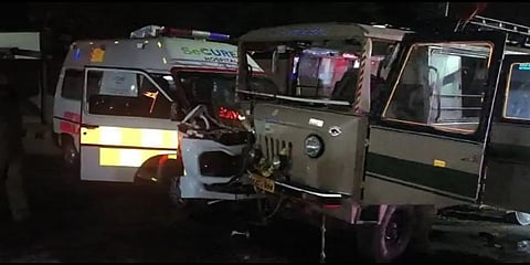 ಹುಬ್ಬಳ್ಳಿ: ಆ್ಯಂಬುಲೆನ್ಸ್ ಮತ್ತು ಟೆಂಪೋ ನಡುವೆ ಅಪಘಾತ ಭೀಕರ ಅಪಘಾತ ಸಂಭವಿಸಿ ಆ್ಯಂಬುಲೆನ್ಸ್ ಚಾಲಕ ಸೇರಿ 8ಕ್ಕೂ ಹೆಚ್ಚು ಜನರು ಗಾಯಗೊಂಡಿರುವ ಘಟನೆ ಹುಬ್ಬಳ್ಳಿಯ ದೇಶಪಾಂಡೆ ನಗರದ ಬಳಿ ಬುಧವಾರ ನಸುಕಿನ ಜಾವ ನಡೆದಿದೆ.