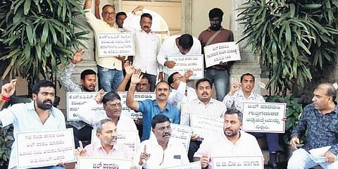 ಬೆಂಗಳೂರು: ಬೃಹತ್ ಬೆಂಗಳೂರು ಮಹಾನಗರ ಪಾಲಿಕೆ ಕಾಮಗಾರಿ ಪೂರ್ಣಗೊಂಡು ಮೂರು ವರ್ಷ ಕಳೆದರೂ 200 ಕೋಟಿ ಬಿಡುಗಡೆ ಮಾಡಿಲ್ಲ ಎಂದು ಆರೋಪಿಸಿ ಗುತ್ತಿಗೆದಾರರು ಬಿಬಿಎಂಪಿ ಮತ್ತು ಕರ್ನಾಟಕ ರೂರಲ್ ಇನ್ಫ್ರಾಸ್ಟ್ರಕ್ಚರ್ ಡೆವಲಪ್ಮೆಂಟ್ ಲಿಮಿಟೆಡ್ನಲ್ಲಿ (KRIDL) ಕೆಲಸ ಮಾಡುತ್ತಿರುವ ಗುತ್ತಿಗೆದಾರರು ಬಿಬಿಎಂಪಿ ಕೇಂದ್ರ ಕಚೇರಿಯಲ್ಲಿ ಬೃಹತ್ ಪ್ರತಿಭಟನೆ ನಡೆಸಿದರು.