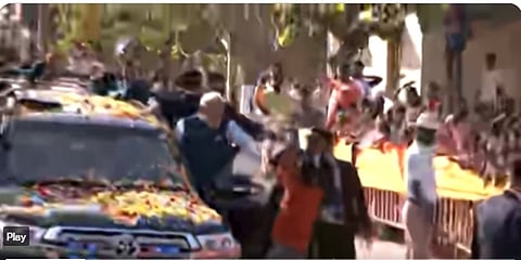 ಈ ವೇಳೆ ಪ್ರಧಾನಿ ಮೋದಿ ಬಾಲಕನಿಂದ ಹೂವಿನ ಹಾರ ಪಡೆದು ಕಾರಿನ ಮೇಲೆ ಹಾಕಿದ್ದಾರೆ. ಬಳಿಕ ಪೊಲೀಸರು ಆ ಯುವಕನನ್ನು ವಶಕ್ಕೆ ಪಡೆದಿದ್ದಾರೆ.