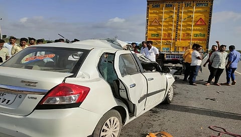 ಕೊಪ್ಪಳ: ಲಾರಿಗೆ ಕಾರು ಹಿಂದಿನಿಂದ ಡಿಕ್ಕಿ ಹೊಡೆದ ಕಾರಣ ಮಹಿಳೆ ಸೇರಿ ಮೂವರು ಸ್ಥಳದಲ್ಲಿಯೇ ಸಾವಿಗೀಡಾದ ಘಟನೆ ಮಂಗಳವಾರ ಬೆಳಿಗ್ಗೆ ಇಲ್ಲಿನ ರಾಷ್ಟ್ರೀಯ ಹೆದ್ದಾರಿಯಲ್ಲಿ ನಡೆದಿದೆ.