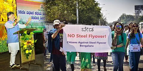 ಕಳೆದ ಬಾರಿ ಸ್ಟೀಲ್ ಬ್ರಿಡ್ಜ್ ನಿರ್ಮಾಣಕ್ಕೆ ಮುಂದಾದಾಗ ಹಣ ಹೊಡೆಯುತ್ತಾರೆ ಎಂದು ಜೋರಾಗಿ ಪ್ರತಿಭಟನೆ ಮಾಡಿದರು. ಆಗ ಸಿದ್ದರಾಮಯ್ಯ ಹಾಗೂ ಜಾರ್ಜ್ ಯೋಜನೆ ಕೈ ಬಿಟ್ಟರು. ನಾನಾಗಿದ್ದರೆ ಯಾವುದಕ್ಕೂ ಬಗ್ಗುತ್ತಿರಲಿಲ್ಲ ಎಂದು ಡಿಸಿಎಂ ಡಿಕೆ ಶಿವಕುಮಾರ್ ಹೇಳಿದರು. ವಿಧಾನಸೌಧದ ಬ್ಯಾಂಕ್ವೆಟ್ ಹಾಲ್ ನಲ್ಲಿ ಮಂಗಳವಾರ ನಡೆದ ಕೆಂಪೇಗೌಡರ ಜಯಂತಿ ಕಾರ್ಯಕ್ರಮದಲ್ಲಿ ಮಾತನಾಡಿದ ಡಿಕೆ ಶಿವಕುಮಾರ್, 'ಈಗಲೂ ನಾನು ಕೆಲವು ನಿರ್ಧಾರ ಕೈಗೊಳ್ಳುತ್ತೇನೆ. ಪ್ರತಿಭಟನೆ ಮಾಡುವವರು ಸಿದ್ಧರಾಗಲಿ. ನಾನು ಮಾತ್ರ ಕೆಲಸದ ವಿಚಾರದಲ್ಲಿ ಮುಂದೆ ಸಾಗುತ್ತಿರುತ್ತೇನೆ ಎಂದರು.