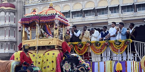 ಮೀನ ಲಗ್ನದಲ್ಲಿ ಅಂಬಾರಿಗೆ ಪುಷ್ಪಾರ್ಚನೆ: ಸಂಜೆ 4.40ರಿಂದ 5 ಗಂಟೆಗೆ ಸಲ್ಲುವ ಶುಭ ಮೀನ ಲಗ್ನದಲ್ಲಿ ಸಿಎಂ ಸಿದ್ದರಾಮಯ್ಯ ಅವರು ಅಂಬಾರಿಗೆ ಪುಷ್ಪಾರ್ಚನೆ ಸಲ್ಲಿಸಲಿದ್ದಾರೆ. ಈ ವೇಳೆ ಡಿಸಿಎಂ ಡಿ.ಕೆ.ಶಿವಕುಮಾರ್, ಜಿಲ್ಲಾ ಉಸ್ತುವಾರಿ ಸಚಿವ ಡಾ. ಎಚ್.ಸಿ. ಮಹದೇವಪ್ಪ, ರಾಜವಂಶಸ್ಥ ಯದುವೀರ ಕೃಷ್ಣದತ್ತ ಚಾಮರಾಜ ಒಡೆಯರ್, ಮೇಯರ್ ಶಿವಕುಮಾರ್, ಜಿಲ್ಲಾಧಿಕಾರಿ ಡಾ.ಕೆ.ವಿ.ರಾಜೇಂದ್ರ, ನಗರ ಪೊಲೀಸ್ ಆಯುಕ್ತ ರಮೇಶ್ ಬಾನೋತ್ ಭಾಗಿಯಾಗಿದ್ದಾರೆ.
