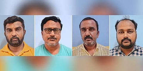 ಮೈಸೂರಿನ ಬನ್ನೂರು ರಸ್ತೆ ವಸಂತನಗರದ ಶಿವಲಿಂಗೇಗೌಡ, ಮಂಡ್ಯ ಜಿಲ್ಲೆ ಕೂಳೇನಹಳ್ಳಿಯ ನಯನಕುಮಾರ್, ಪಾಂಡವಪುರ ತಾಲೂಕಿನ ಸುಂಕದನ್ನೂರು ಗ್ರಾಮದ ನವೀನಕುಮಾರ್, ದಾವಣಗೆರೆ ಜಿಲ್ಲೆ ಹೊನ್ನಾಳಿ ತಾಲೂಕಿನ ಕ್ಯಾಸಿನಕೆರೆ ಗ್ರಾಮದ ಟಿ.ಎಂ.ವೀರೇಶ್ ಬಂಧಿತ ಆರೋಪಿಗಳಾಗಿದ್ದಾರೆ.