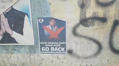ಚಾಮರಾಜನಗರ: ಲೋಕಸಭಾ ಚುನಾವಣೆಗೆ ಕಾಂಗ್ರೆಸ್ ಅಭ್ಯರ್ಥಿ ಸುನೀಲ್ ಬೋಸ್ ನಾಮಪತ್ರ ಸಲ್ಲಿಕೆ ಹಿನ್ನೆಲೆಯಲ್ಲಿ ನಗರದಲ್ಲಿ ಬುಧವಾರ ಕೆಲವೆಡೆ ಮರಳು ಮಾಫಿಯಾದ ಅನಭಿಷಿಕ್ತ ದೊರೆ ಗೋ ಬ್ಯಾಕ್ ಎಂಬ ಪೋಸ್ಟರ್ಗಳು ಕಂಡು ಬಂದವು.
