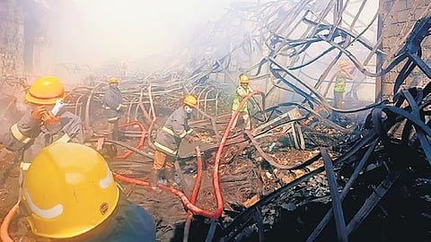 ಚಾಮರಾಜಪೇಟೆಯ ಗವಿಪುರದ ಟಿಆರ್.ಮಿಲ್ ಆವರಣದ ಟೈಯರ್ ಗೋದಾಮಿನಲ್ಲಿ ನಿನ್ನೆ ಬೆಳಗಿನ ಜಾವ 4.40ರ ಸುಮಾರಿಗೆ ದಟ್ಟ ಹೊಣೆ ಕಾಣಿಸಿಕೊಂಡು, ಕೆಲವೇ ಕ್ಷಣಗಳಲ್ಲಿ ಬೆಂಕಿ ಹೊತ್ತಿಕೊಂಡಿದೆ.