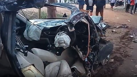 ಕೋಲಾರ: ಐಷಾರಾಮಿ ಆಡಿ ಕಾರು ಮರಕ್ಕೆ ಡಿಕ್ಕಿಯಾಗಿ ಭೀಕರ ಅಪಘಾತ ಸಂಭವಿಸಿ ಕಾರಿನಲ್ಲಿದ್ದ ಮೂವರು ಸ್ಥಳದಲ್ಲೇ ಮೃತಪಟ್ಟ ಘಟನೆ ಕೋಲಾರ ಹೊರವಲಯದ ಸಹಕಾರ ನಗರದ ಬಳಿ ನಡೆದಿದೆ. ಹಾಸನ ಮೂಲದ ಹರ್ಷವರ್ಧನ್, ಬಳ್ಳಾರಿ ಮೂಲದ ಬಸವರಾಜ್, ಕೋಲಾರ ಜಿಲ್ಲೆ ಬಂಗಾರಪೇಟೆಯ ನಿಶ್ಚಲ್ ಮೃತ ದುರ್ದೈವಿಗಳು. ಕಾರಿನಲ್ಲಿದ್ದ ಮತ್ತೋರ್ವ ಬಂಗಾರಪೇಟೆಯ ಸಾಯಿ ಗಗನ್ ದುರಂತದಲ್ಲಿ ಬಚಾವ್ ಆಗಿದ್ದಾರೆ.