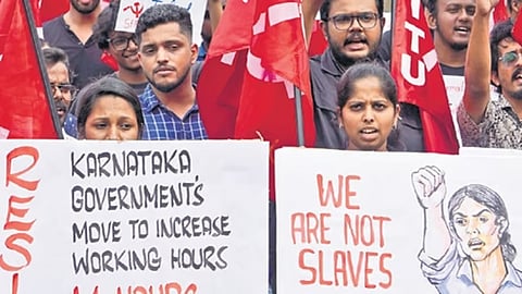 ರಾಜ್ಯ ಸರ್ಕಾರ ಐಟಿ ಉದ್ಯೋಗಿಗಳ ಕೆಲಸದ ಅವಧಿ ಹೆಚ್ಚಿಸಲು ವಾಣಿಜ್ಯ ಸಂಸ್ಥೆಗಳ ಕಾಯಿದೆ 1961ಕ್ಕೆ ತಿದ್ದುಪಡಿ ಮಾಡಲು ಯೋಜಿಸಿರುವುದು ಉದ್ಯೋಗಿಗಳ ಕೋಪಕ್ಕೆ ಕಾರಣವಾಗಿದೆ.