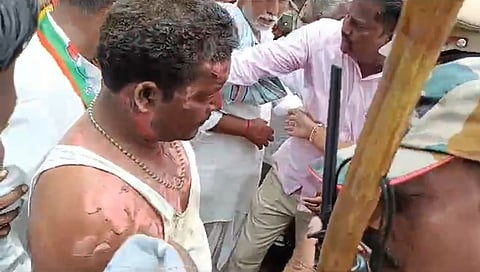ಜಿಲ್ಲಾಧಿಕಾರಿ ಕಚೇರಿ ಮುಂಭಾಗ ಪ್ರತಿಭಟನಾಕಾರರು ಟೈರ್ ಗಳಿಗೆ ಬೆಂಕಿ ಹಚ್ಚಿ, ಕೇಂದ್ರೀಯ ಬಿಜೆಪಿ ನಾಯಕರ ಭಾವಚಿತ್ರಗಳಿಗೆ ಚಪ್ಪಲಿಯಿಂದ ಹೊಡೆದು ಆಕ್ರೋಶ ವ್ಯಕ್ತಪಡಿಸುತ್ತಿದ್ದಾಗ ಇದ್ದಕ್ಕಿದ್ದಂತೆ ಪೆಟ್ರೋಲ್ ಕ್ಯಾನ್ ವೊಂದನ್ನು ತೆಗೆದುಕೊಂಡ ಸಿದ್ದರಾಮಯ್ಯ ಬೆಂಬಲಿಗ, ತನ್ನ ಮೇಲೆ ಸುರಿದುಕೊಂಡು ಬೆಂಕಿ ಹಚ್ಚಿಕೊಳ್ಳಲು ಯತ್ನಿಸಿದ್ದಾನೆ. ಇದರಿಂದ ಅಲ್ಲಿಯೇ ಇದ್ದ ಇತರ ಪ್ರತಿಭಟನಾಕಾರನಿಗೂ ಆಕಸ್ಮಿಕವಾಗಿ ಬೆಂಕಿ ತಗುಲಿದ್ದು, ಸಣ್ಣ ಪ್ರಮಾಣದಲ್ಲಿ ಗಾಯಗೊಂಡಿದ್ದಾರೆ.