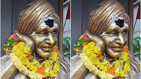 ರಾಜ್ ವಿಷ್ಣು ಅಲಿಯಾಸ್ ಶಿವ ಕೃಷ್ಣ ಬಂಧಿತ ಆರೋಪಿಯೀಗಿದ್ದು, ಬ್ಯಾಡರಹಳ್ಳಿಯಲ್ಲಿ ವಾಸವಾಗಿದ್ದಾನೆ. ವಿಗ್ರಹವನ್ನು ಹಾಳು ಮಾಡುವಂತೆ ಕನಸಿನಲ್ಲಿ ತನಗೆ ಸೂಚನೆ ಬಂದಿತ್ತು ಎಂದು ತನಿಖೆಯ ವೇಳೆ ಹೇಳಿಕೊಂಡಿದ್ದಾನೆ. ಗಿರಿನಗರದ ವೀರಭದ್ರನಗರ ಬಸ್ ನಿಲ್ದಾಣದ ಬಳಿ ಐದು ವರ್ಷಗಳ ಹಿಂದೆ ಜಯ ಕರ್ನಾಟಕ ಜನಪರ ವೇದಿಕೆ ಸ್ಥಾಪಿಸಿದ್ದ ಪ್ರತಿಮೆಯನ್ನು ನವೆಂಬರ್ 30 ರಂದು ಧ್ವಂಸಗೊಳಿಸಲಾಗಿತ್ತು. ಇದಲ್ಲದೆ, ಆರೋಪಿ ಈ ಹಿಂದೆ ಕೆಲಸಕ್ಕೆ ಹೋಗುತ್ತಿದ್ದಾಗ ವಿಗ್ರಹವನ್ನು ಗಮನಿಸಿದ್ದ ಎಂದು ಪೊಲೀಸ್ ಮೂಲಗಳು ತಿಳಿಸಿವೆ. ಅದೇ ದಿನ ರಾತ್ರಿ, ಅವನು ಸ್ಕೂಟರ್ನಲ್ಲಿ ಹಿಂತಿರುಗಿ ಅದನ್ನು ವಿರೂಪಗೊಳಿಸಲು ಸುತ್ತಿಗೆಯನ್ನು ಬಳಸಿದನು. ಮರುದಿನ ಬೆಳಗ್ಗೆ ಘಟನೆ ಬೆಳಕಿಗೆ ಬಂದಿದೆ.