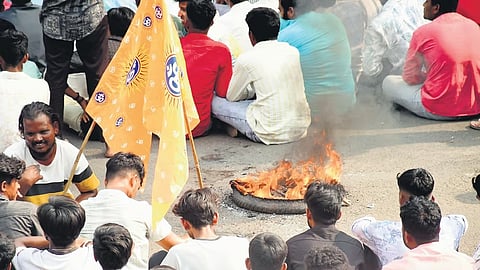 ಬಂಜಾರ ಭವನದಲ್ಲಿ ಜಮಾಯಿಸಿದ ಸಮುದಾಯದ ಕಾರ್ಯಕರ್ತರು ಮಿನಿ ವಿಧಾನಸೌಧವರಗೂ ಜಾಥಾ ನಡೆಸಿದರು. ಎಸ್ವಿಪಿ ಸರ್ಕಲ್ ಕಡೆಗೆ ಹೋಗುತ್ತಿದ್ದಾಗ ಹಿಂಸಾಚಾರ ಭುಗಿಲೆದಿದ್ದು, ಮಿನಿ ವಿಧಾನಸೌಧದ ಎರಡನೇ ಗೇಟ್ ಬಳಿ ನಿಲ್ಲಿಸಿದ್ದ ಕಾರಿನ ಮೇಲೆ ಕಿಡಿಗೇಡಿಗಳು ಕಲ್ಲು ತೂರಿದ್ದಾರೆ.