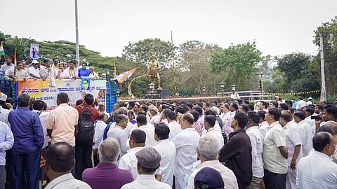 ನಗರದ ಕುರುಬಾರಹಳ್ಳಿಯ ಸಂಗೊಳ್ಳಿ ರಾಯಣ್ಣ ವೃತ್ತದಿಂದ ಸಿದ್ಧಾರ್ಥ ನಗರದಲ್ಲಿರುವ ಜಿಲ್ಲಾಧಿಕಾರಿ ಕಚೇರಿಯವರೆಗೆ ನಡೆದ ಬೃಹತ್ ಪ್ರತಿಭಟನಾ ಮೆರವಣಿಗೆಯಲ್ಲಿ ಸಚಿವರಾದ ಡಾ.ಹೆಚ್.ಸಿ.ಮಹದೇವಪ್ಪ, ಕೆ.ವೆಂಕಟೇಶ್ ನೇತೃತ್ವದಲ್ಲಿ ಶಾಸಕರು, ಸಾವಿರಾರು ಮುಖಂಡರು ಹಾಗೂ ಕಾರ್ಯಕರ್ತರು ಪಾಲ್ಗೊಂಡು, ಅಮಿತ್ ಶಾ ವಿರುದ್ಧ ಘೋಷಣೆಗಳನ್ನು ಕೂಗಿ, ಆಕ್ರೋಶ ವ್ಯಕ್ತಪಡಿಸಿದರು.
