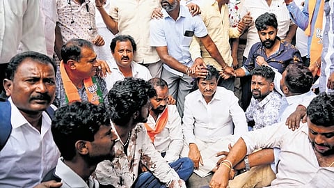 ಅಂದು ಹರೀಶ್ ಪೂಂಜಾ, ಮೊನ್ನೆ ಸಿ.ಟಿ.ರವಿ, ಇಂದು ಮುನಿರತ್ನ ಹೀಗೆ ಒಬ್ಬರಾದ ಮೇಲೆ ಒಬ್ಬ ಶಾಸಕರನ್ನು ಟಾರ್ಗೆಟ್ ಮಾಡಿಕೊಂಡು ತುರ್ತು ಪರಿಸ್ಥಿತಿಯ ಕರಾಳ ನೃತ್ಯವನ್ನು ಮತ್ತೆ ವಿಜೃಂಭಿಸಲು ಕಾಂಗ್ರೆಸಿಗರು ಹೊರಟಿದ್ದಾರೆ, ಪ್ರಜಾತಂತ್ರ ವ್ಯವಸ್ಥೆಯಲ್ಲಿ ಇಂತಹ ದಮನಕಾರಿ ಧೋರಣೆಯನ್ನು ನೋಡಿಕೊಂಡು ಸುಮ್ಮನಿರಲು ಬಿಜೆಪಿಯ ಕಾರ್ಯಕರ್ತರು ರಣಹೇಡಿಗಳಲ್ಲ, ಪ್ರಜಾಸತ್ತಾತ್ಮಕ ರೀತಿಯಲ್ಲೇ ಕಾಂಗ್ರೆಸಿಗರಿಗೆ ಬುದ್ಧಿ ಕಲಿಸುವ ಮಾರ್ಗ ನಮಗೂ ತಿಳಿದಿದೆ. ಪೊಲೀಸ್ ಅಧಿಕಾರಿಗಳು ಮಿತಿಮೀರಿ ಸರ್ಕಾರದ ‘ಕೈ’ಗೊಂಬೆಗಳಂತೆ ವರ್ತಿಸುತ್ತಿದ್ದಾರೆ, ಭವಿಷ್ಯತ್ತಿನಲ್ಲಿ ಇದಕ್ಕೆ ತಕ್ಕ ಪ್ರತಿಫಲವನ್ನು ಅವರು ಅನುಭವಿಸಲೇ ಬೇಕಾಗುತ್ತದೆ ಎಂಬ ಎಚ್ಚರ ಪೊಲೀಸ್ ಅಧಿಕಾರಿಗಳಿಗಿರಲಿ.