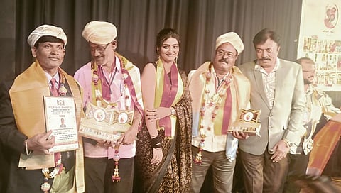ಬೆಂಗಳೂರು: ತಮಿಳುನಾಡಿನ ಕೇಂದ್ರೀಯ ವಿಶ್ವವಿದ್ಯಾಲಯದಲ್ಲಿ ಪ್ರಾಧ್ಯಾಪಕರಾಗಿ ಕಾರ್ಯನಿರ್ವಹಿಸುತ್ತಿರುವ ಡಾ. ಭೀಮಪ್ಪ ರಾಮಪ್ಪ ರಂಗಣ್ಣವರಿಗೆ ಕನ್ನಡ ಫಿಲಂ ಚೇಂಬರ್(ರಿ) ಕನ್ನಡ ರಾಜ್ಯೋತ್ಸವ ಪ್ರಶಸ್ತಿ ನೀಡಿ ಗೌರವಿಸಿದೆ.