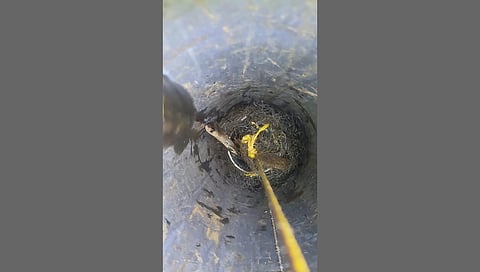ಪ್ರದೇಶದ ಜನನಿಬಿಡ ಮುಖ್ಯ ರಸ್ತೆಯನ್ನು ದಾಟುವ ವೇಳೆ ಹಾವು ಬೋರ್ವೆಲ್ ಪೈಪ್ಗೆ ಬಿದ್ದಿತ್ತು. ವಾಹನ ದಟ್ಟಣೆ ಮತ್ತು ಜನರಿಂದ ಗಾಬರಿಗೊಂಡು ತರಾತುರಿಯಲ್ಲಿ ರಕ್ಷಣೆ ಪಡೆಯಲು ಆಕಸ್ಮಿಕವಾಗಿ ಮುಚ್ಚದೇ ಇದ್ದ ಬೋರ್ವೆಲ್ ಪೈಪ್ಗೆ ಹಾವು ಬಿದ್ದಿತ್ತು. ಈ ದೃಶ್ಯ ಸಿಸಿಟಿವಿಯಲ್ಲಿ ಸೆರೆಯಾಗಿದ್ದು, ಇದು ಸ್ಥಳೀಯರ ಸುರಕ್ಷತೆಯ ಬಗ್ಗೆ ತೀವ್ರ ಆತಂಕ ಮೂಡಿಸಿತ್ತು.