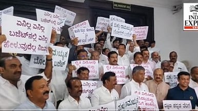 ಬೆಂಗಳೂರು: 2024-25ನೇ ಸಾಲಿನ ಬಜೆಟ್ ನ್ನು ವಿಧಾನಸಭೆಯಲ್ಲಿ ಮಂಡಿಸಲು ಆರಂಭಿಸಿದ ಕೆಲವೇ ಹೊತ್ತಿನಲ್ಲಿ ವಿರೋಧ ಪಕ್ಷದ ನಾಯಕರು ಸದನದಲ್ಲಿ ಗಲಾಟೆ, ಗದ್ದಲ ಆರಂಭಿಸಿದರು.ಏನಿಲ್ಲ.. ಏನಿಲ್ಲ ಎಂದು ಹಾಡು ಹೇಳಿ ಪ್ರತಿಭಟನೆ ಆರಂಭಿಸಿದ ಬಿಜೆಪಿ ನಾಯಕರು ತೀವ್ರ ಆಕ್ರೋಶ ವ್ಯಕ್ತಪಡಿಸಿದರು.