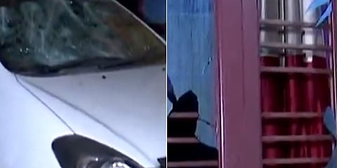 ದುಷ್ಕರ್ಮಿಗಳು ನಡೆಸಿದ ಹಲ್ಲೆಯಲ್ಲಿ ವಾಹನ, ಮನೆಯ ಕಿಟಕಿಗೆ ಹಾನಿಯುಂಟಾಗಿರುವುದು