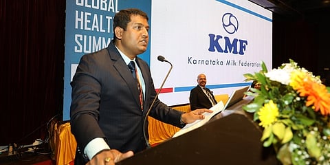 ನೂರಾರು ವೈದ್ಯರ ಸಮಾಗಮದೊಂದಿಗೆ ಆರೋಗ್ಯಕ್ಕೆ ಸಂಬಂಧಿಸಿದ ವಿವಿಧ ವಿಷಯಗಳ ಕುರಿತಾದ ವಿಚಾರ ಸಂಕಿರಣದ ವೇದಿಕೆಯನ್ನುದ್ದೇಶಿಸಿ ಮಾತನಾಡಿದ ಅವರು, ನಂದಿನಿ ಹಾಲಿನ ಉತ್ಪನ್ನಗಳು ಅತ್ಯುತ್ತಮ ಗುಣಮಟ್ಟದ ಜೊತೆಗೆ ಕೈಗೆಟಕುವ ಬೆಲೆಯಲ್ಲಿ ಗ್ರಾಹಕರಿಗೆ ನೀಡುತ್ತಿದೆ. ಪ್ರಸ್ತುತ ನಡೆಯುತ್ತಿರುವ ಈ ಹೆಲ್ತ್ ಸಮ್ಮಿಟ್ನ ವೇದಿಕೆಯಲ್ಲಿ ಅಂತಾರಾಷ್ಟ್ರೀಯ ಮಟ್ಟದಲ್ಲಿ ನಂದಿನಿ ಬ್ರಾಂಡ್ ಅನ್ನು ವಿಸ್ತರಿಸುವ ಆಶಯವನ್ನು ಕೆಎಂಎಫ್ ಹೊಂದಿದೆ. ಕೆಎಂಎಫ್ ಸಂಸ್ಥೆಯು ನಂದಿನಿ ಹೆಸರಿನಡಿ ಹಲವು ಉತ್ಪನ್ನಗಳನ್ನು ಪರಿಚಯಿಸಿದ್ದು, ಕರ್ನಾಟಕದಾದ್ಯಂತ ಪ್ರತಿನಿತ್ಯ 45 ಲಕ್ಷ ಲೀಟರ್ ಹಾಲು ಮಾರಾಟವಾಗುತ್ತಿದೆ. ಮಂಡಳಿಯು ಶೇ. 84ರಷ್ಟು ಲಾಭವನ್ನು ನೇರವಾಗಿ ರೈತರಿಗೆ ನೀಡುತ್ತಿದೆ ಎಂದು ಹೇಳಿದರು.