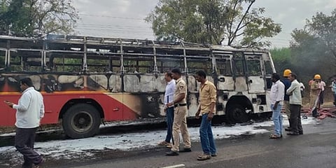ಘಟನೆಯ ಸುದ್ದಿ ತಿಳಿಯುತ್ತಿದ್ದಂತೆ ಅಗ್ನಿ ಶಾಮಕ ಸಿಬ್ಬಂದಿ ಸ್ಥಳಕ್ಕೆ ಧಾವಿಸಿ ಬೆಂಕಿ ನಂದಿಸುವಲ್ಲಿ ಯಶಸ್ವಿಯಾಗಿದ್ದಾರೆ. ಬಸ್ ಸಂಪೂರ್ಣ ಸುಟ್ಟು ಕರಕಲಾಗಿದೆ.