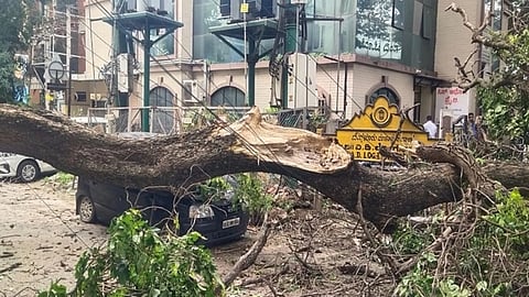 ಬೆಂಗಳೂರು: ಬೆಂಗಳೂರಿನಲ್ಲಿ ಮಳೆ ಅಥವಾ ಗಾಳಿ ಯಾವುದು ಇಲ್ಲದಿದ್ದರೂ ಶನಿವಾರ ಕ್ವೀನ್ಸ್ ರಸ್ತೆಯಲ್ಲಿ ಬೃಹತ್ ಮರವೊಂದು ಧರೆಗುರುಳಿದ್ದು, ಘಟನೆಯಲ್ಲಿ ಎರಡು ಕಾರುಗಳು ಸಂಪೂರ್ಣ ಜಖಂಗೊಂಡಿವೆ.