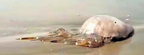 ದೇವಬಾಗ್ (ಉತ್ತರ ಕನ್ನಡ): ಮೀನು ಯಾರಿಗೂ ಏನೂ ಮಾಡೋಲ್ಲ ಅನ್ನೋದೇನೋ ನಿಜ. ಆದರೆ, ಅದರಲ್ಲೂ ವಿಷಕಾರಿ ಮೀನುಗಳು ಉಂಟು ಅನ್ನೋದಕ್ಕೆ ಈ ಜೆಲ್ಲಿ ಮೀನೇ ಉದಾಹರಣೆ. ಈ ಮೀನು ಎಲ್ಲವನ್ನೂ ಕಾಲಿನ ಮೂಲಕವೇ ಗ್ರಹಿಸುತ್ತದೆ. ಅದರ ಮೂಲಕವೇ ಶತ್ರುಗಳಿಗೆ ಕುಟುಕುತ್ತದೆ. ಈ ರೀತಿ ಕುಟುಕಿದರೆ ಕೆಲವೊಮ್ಮೆ ಸಾವು ಸಂಭವಿಸುತ್ತವೆ.