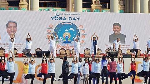ಕರ್ನಾಟಕ ಸರ್ಕಾರದ ವತಿಯಿಂದ ವಿಧಾನಸೌಧದ ಎದುರು ಆಯೋಜಿಸಿದ್ದ ʻಯೋಗೋತ್ಸವʼ ಕಾರ್ಯಕ್ರಮದಲ್ಲಿ 10ನೇ ಅಂತಾರಾಷ್ಟ್ರೀಯ ಯೋಗ ದಿನವನ್ನು ಆಚರಿಸಲಾಯಿತು.