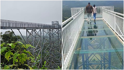 ಕೆ ನಿಡುಗಣೆ ಗ್ರಾಮ ಪಂಚಾಯತ್ ವ್ಯಾಪ್ತಿಯಲ್ಲಿರುವ ಸುಮಾರು 200 ಮೀಟರ್ ಉದ್ದದ ಗಾಜಿನ ಸೇತುವೆಯು ವಿಶಾಲವಾದ ಹಸಿರು ಮತ್ತು ಪರ್ವತಗಳ ಮಧ್ಯ ನಿರ್ಮಿಸಲಾಗಿದೆ. ಈ ಗಾಜಿನ ಸೇತುವೆಯು ಪ್ರಧಾನ ಪ್ರವಾಸಿ ತಾಣವಾದ ಅಬ್ಬೆ ಜಲಪಾತದ ದಾರಿಯಲ್ಲಿದೆ.