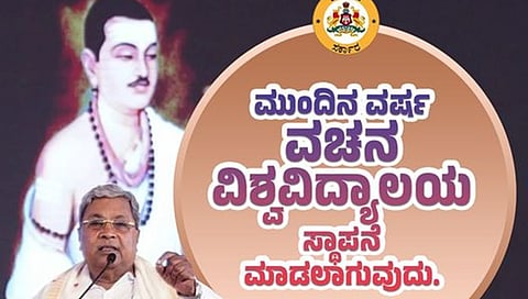 ಶರಣರ ವಚನಗಳು ಹಾಳೆಗಳಿಗೆ ಸೀಮಿತವಾಗಬಾರದು, ವಚನಗಳ ಪ್ರತಿ ಅಕ್ಷರ ಜನರ ಎದೆಗೆ ಇಳಿಯಬೇಕು. ಆ ಮೂಲಕ ಬಸವಣ್ಣನವರ ಸಮಸಮಾಜದ ಕನಸು ಸಾಕಾರಗೊಳ್ಳಬೇಕು. ಈ ಉದ್ದೇಶದಿಂದ ಮುಂದಿನ ವರ್ಷ 'ವಚನ ವಿಶ್ವವಿದ್ಯಾಲಯ' ಸ್ಥಾಪನೆ ಮಾಡಬೇಕೆಂದು ನಿರ್ಧರಿಸಿದ್ದೇನೆ ಎಂದು ಸಿದ್ದರಾಮಯ್ಯ ತಿಳಿಸಿದ್ದಾರೆ.