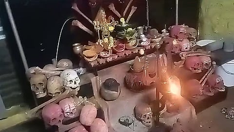 ಗ್ರಾಮಸ್ಥರ ದೂರಿನ ಮೇರೆಗೆ ತೋಟದ ಮನೆಗೆ ಭೇಟಿ ನೀಡಿದಾಗ, ಬುರುಡೆಗಳು ಹಾಗೂ ಮೂಳೆಗಳು ಪತ್ತೆಯಾಗಿವೆ. ಭದ್ರಕಾಳಿ ಫೋಟೊ, ಹೋಮಕುಂಡದ ಸುತ್ತ ಬುರುಡೆಗಳನ್ನು ಜೋಡಿಸಿ ಪೂಜೆ ಮಾಡಲಾಗಿದೆ. ಈತ ಕೆಲ ವರ್ಷಗಳಿಂದ ಸ್ಮಶಾನದಲ್ಲಿ ಪೂಜೆ ಮಾಡುತ್ತಿದ್ದ ಎಂದು ತಿಳಿದು ಬಂದಿದ್ದು, ವಿಚಾರಣೆ ನಡೆಸಲಾಗುತ್ತಿದೆ ಎಂದು ಪೊಲೀಸರು ತಿಳಿಸಿದ್ದಾರೆ.
