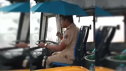 ವಾಯವ್ಯ ಕರ್ನಾಟಕ ಸಾರಿಗೆ (NWKRTC Bus) ಬಸ್ಸೊಂದರಲ್ಲಿ ಸೋರುತ್ತಿರುವ ಮಳೆನೀರಿನಿಂದ ರಕ್ಷಣೆ ಪಡೆಯಲು ಚಾಲಕರೊಬ್ಬರು ಒಂದು ಕೈಯಲ್ಲಿ ಛತ್ರಿ ಹಿಡಿದುಕೊಂಡು ಬಸ್ ಚಲಾಯಿಸಿದ್ದಾರೆ.
