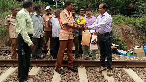 ಉಡುಪಿ: ಕೊಂಕಣ ರೈಲು ಮಾರ್ಗದ ಇನ್ನಂಜೆ ಹಾಗೂ ಪಡುಬಿದ್ರಿ ನಡುವಿನ ರೈಲ್ವೆ ಹಳಿಯಲ್ಲಿ ವೆಲ್ಡಿಂಗ್ ಜಾಯಿಂಟ್ ಬಿಟ್ಟಿರುವುದನ್ನು ಪತ್ತೆ ಹಚ್ಚುವ ಮೂಲಕ ರೈಲ್ವೆ ಜಾಗೃತ ಹಳಿ ನಿರ್ವಾಹಕ ಪ್ರದೀಪ್ ಶೆಟ್ಟಿ ಸಂಭಾವ್ಯ ಅವಘಡ ತಪ್ಪಿಸಿದ್ದಾರೆ.
