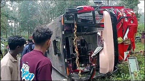 ಪೊಲೀಸರ ಪ್ರಕಾರ, ಇಬ್ಬರು ಮಕ್ಕಳು ಸೇರಿದಂತೆ 45 ಜನರಿದ್ದ ಬಸ್ ಶಬರಿಮಲೆ ದೇವಸ್ಥಾನಕ್ಕೆ ಭೇಟಿ ನೀಡಿ, ಮೈಸೂರಿನ ಹುಣಸೂರಿಗೆ ಹಿಂದಿರುಗುವಾಗ ಇಂದು ಬೆಳಗ್ಗೆ 6 ಗಂಟೆ ಸುಮಾರಿಗೆ ಈ ಅಪಘಾತ ಸಂಭವಿಸಿದೆ.