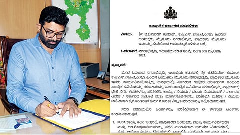 ಬೆಂಗಳೂರು: ಕರ್ನಾಟಕದ ಕಾಂಗ್ರೆಸ್ ಸರ್ಕಾರವನ್ನು ಇಕ್ಕಟ್ಟಿಗೆ ಸಿಲುಕಿಸಿರುವ ಮುಡಾ ಹಗರಣದಲ್ಲಿ (Muda Scam) ಮೊದಲ ತಲೆದಂಡವಾಗಿದ್ದು, ರಾಜ್ಯಪಾಲರ ಆದೇಶಾನುಸಾರ ಹಿಂದಿನ ಆಯುಕ್ತ ಜಿಟಿ ದಿನೇಶ್ ಕುಮಾರ್ (GT Dinesh Kumar) ರನ್ನು ಅಮಾನತು ಮಾಡಲಾಗಿದೆ.
