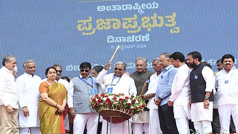 ಬೆಂಗಳೂರು: ಇಂದು ಅಂತಾರಾಷ್ಟ್ರೀಯ ಪ್ರಜಾಪ್ರಭುತ್ವ ದಿನದ ಅಂಗವಾಗಿ ಸಮಾನತೆ, ಐಕ್ಯತೆ, ಸಾಮರಸ್ಯ, ಸಾಮಾಜಿಕ ನ್ಯಾಯವನ್ನು ಬಿಂಬಿಸುವ ಐತಿಹಾಸಿಕ ಜಗತ್ತಿನ ಅತಿ ಉದ್ದದ ಮಾನವ ಸರಪಳಿ ರಚನೆ ಮೂಲಕ ದಾಖಲೆ ಸೃಷ್ಟಿಸಲಾಯಿತು.