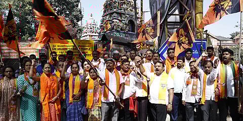 ಕೆರಗೋಡು (Keragodu) ಗ್ರಾಮದ ಹನುಮ ಧ್ವಜ ವಿವಾದ ಇದೀಗ ರಾಜಕೀಯ ಸ್ವರೂಪ ಪಡೆದುಕೊಂಡಿದ್ದು, ಸರ್ಕಾರದ ವಿರುದ್ಧ ಬಿಜೆಪಿ ಮತ್ತು ಜೆಡಿಎಸ್ ನಾಯಕರು ಜಂಟಿ ಪ್ರತಿಭಟನೆಯಲ್ಲಿ ತೊಡಗಿದ್ದಾರೆ. ಪ್ರತಿಭಟನೆ ವ್ಯಾಪಕವಾಗಿರುವಂತೆಯೇ ಇದೀಗ ಸರ್ಕಾರದ ನಿಯಮ ಉಲ್ಲಂಘನೆ ಮಾಡಿದ ಆರೋಪದ ಮೇಲೆ ಕೆರಗೋಡು ಗ್ರಾಮ ಪಂಚಾಯಿತಿ ಪಿಡಿಓ ಜೀವನ್.ಬಿ.ಎಂ ಅವರನ್ನು ಅಮಾನತು ಮಾಡಿದೆ.