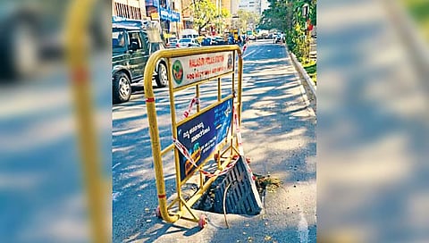ಬೆಂಗಳೂರು: ಕಬ್ಬನ್ ಪಾರ್ಕ್ ಮೆಟ್ರೋ ನಿಲ್ದಾಣದಿಂದ ಎಂಜಿ ರಸ್ತೆ ವೃತ್ತದವರೆಗೆ (ಚಿನ್ನಸ್ವಾಮಿ ಕ್ರೀಡಾಂಗಣ ರಸ್ತೆಯ ಬಳಿ) ಕ್ವೀನ್ಸ್ ರಸ್ತೆಯ ಉದ್ದಕ್ಕೂ ಹದಗೆಟ್ಟ ಒಳಚರಂಡಿಗಳು ಒಂದು ತಿಂಗಳಿಗೂ ಹೆಚ್ಚು ಕಾಲದಿಂದ ಪಾದಚಾರಿಗಳು ಮತ್ತು ವಾಹನ ಚಾಲಕರಿಗೆ ಅಪಾಯವನ್ನುಂಟುಮಾಡುತ್ತಿವೆ.