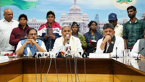 ಬೆಂಗಳೂರು: ಆರು ಮಂದಿ ನಕ್ಸಲೀಯರು ಬುಧವಾರ ಶಸ್ತ್ರಾಸ್ತ್ರ ತ್ಯಜಿಸಿ ಸಿಎಂ ಸಿದ್ದರಾಮಯ್ಯ ಅವರ ಮುಂದೆ ಶರಣಾದರು. ಇದರ ಸಂಕೇತವಾಗಿ ಮುಂಡಗಾರು ಲತಾ ನಕ್ಸಲ್ ಸಮವಸ್ತ್ರವನ್ನು ಮುಖ್ಯಮಂತ್ರಿ ಸಿದ್ದರಾಮಯ್ಯ ಅವರಿಗೆ ಒಪ್ಪಿಸಿದರು. ಬಳಿಕ ಸಿದ್ದರಾಮಯ್ಯ ಸಂವಿಧಾನದ ಪ್ರತಿ ಹಾಗೂ ಹೂಗಳನ್ನು ಅವರಿಗೆ ನೀಡುವ ಮೂಲಕ ಸಮಾಜದ ಮುಖ್ಯವಾಹಿನಿಗೆ ಬರಮಾಡಿಕೊಂಡರು. ಈ ವೇಳೆ ಉಪ ಮುಖ್ಯಮಂತ್ರಿ ಡಿಕೆ ಶಿವಕುಮಾರ್, ಗೃಹ ಸಚಿವ ಡಾ. ಜಿ. ಪರಮೇಶ್ವರ್ ಮತ್ತಿತರ ನಾಯಕರು, ಅಧಿಕಾರಿಗಳು ಉಪಸ್ಥಿತರಿದ್ದರು.